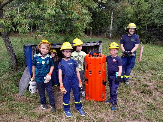 Aufgeregt kamen sie zurück und berichteten der zweiten Gruppe, der 8- bis 9-Jährigen, dass ein Verletzter in der Übungsstrecke liegt. Sofort setzte sich
