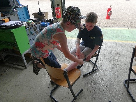 Es wurden die Sofortmaßnahmen, der Anruf über die Notrufnummer sowie das Verbinden von Wunden geübt.